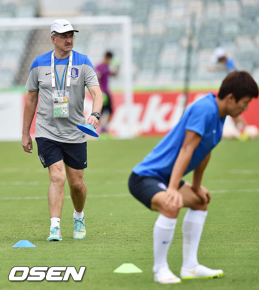 9일 오후 호주 캔버라 스타디움서 열린 한국 축구대표팀 훈련때 슈틸리케 감독이 선수들의 훈련을 지켜보고 있다.