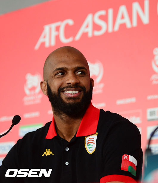 9일 오후 호주 캔버라 스타디움서 열린 오만 축구대표팀 훈련전 기자회견때 알리 알 합시가 미소짓고 있다.