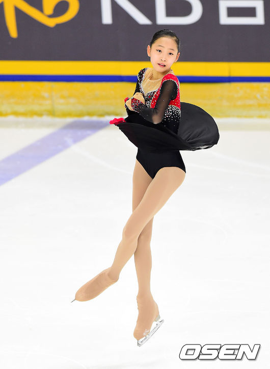 여자 시니어 박세빈이 연기를 펼치고 있다.