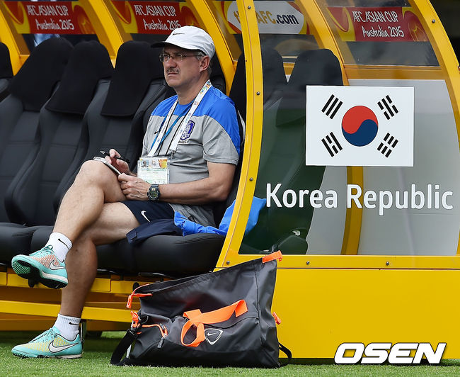 9일 오후 호주 캔버라 스타디움서 열린 한국 축구대표팀 훈련때 슈틸리케 감독이 생각에 잠겨있다.