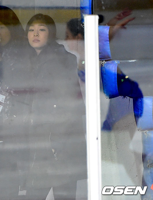 경기장을 찾은 김연아가 김해진의 플레이를 지켜보고 있다.