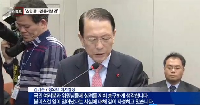 [OSEN=이슈팀] 김기춘 청와대 비서실장이 김영한 민정수석비서관에 대해 해임을 건의하겠다고 엄포를 놓았다.