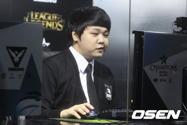 9일 오후 서울 용산 온게임넷 e스포츠 상설경기장에서 '2015 LOL 챔피언스(이하 롤챔스)' 코리아 스프링 2회차 1경기 GE 타이거즈와 IM의 경기가 열렸다. 유니폼을 바꾼 GE타이거즈의 '프레이' 김종인이 경기를 준비하고 있다.
