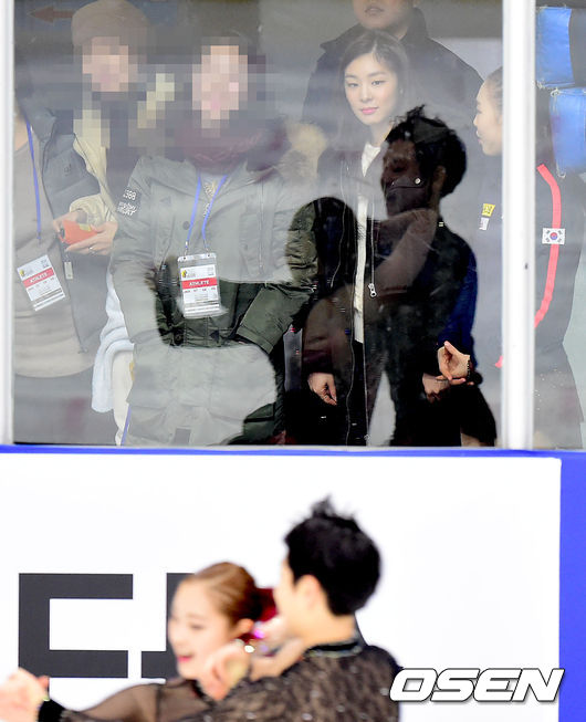 경기 종료 후 진행된 갈라쇼에서 아이스댄스가 진행되고 있는 가운데 김연아가 이 모습을 지켜보고 있다./dreamer@osen.co.kr