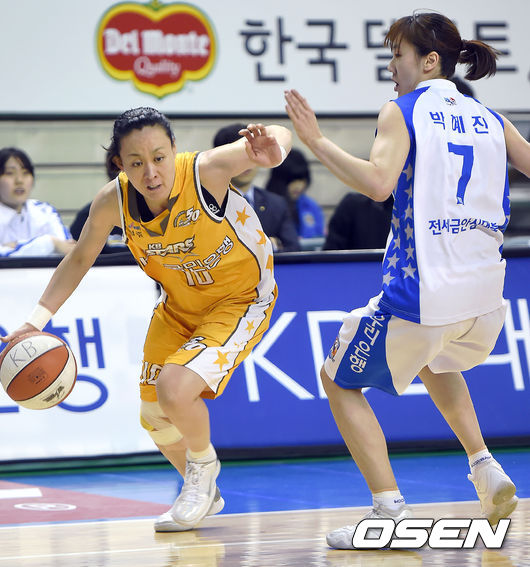 1쿼터 KB 스타즈 변연하가 돌파를 시도하고 있다.