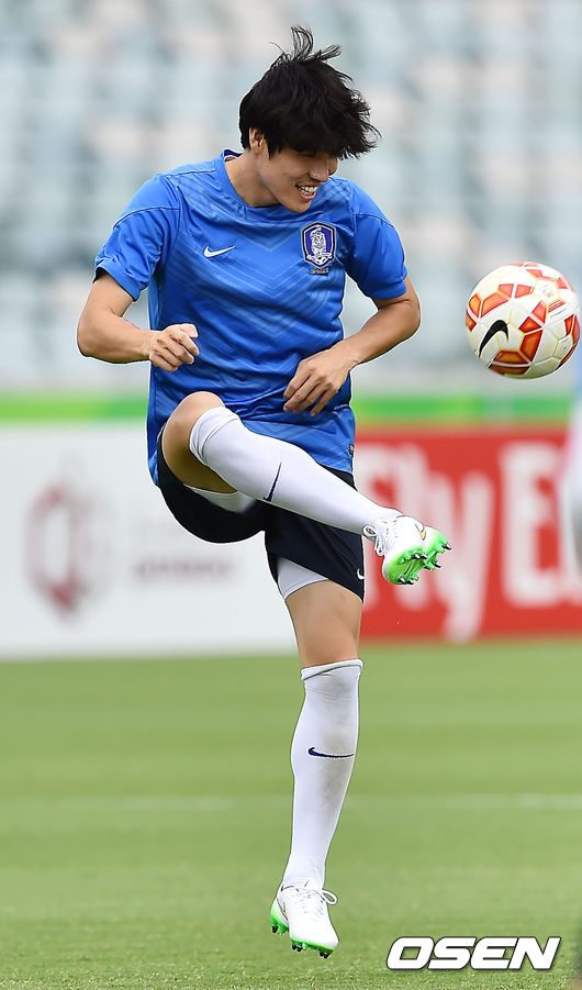 9일 오후 호주 캔버라 스타디움서 열린 한국 축구대표팀의 훈련때 김창수가 훈련을 하고 있다.
