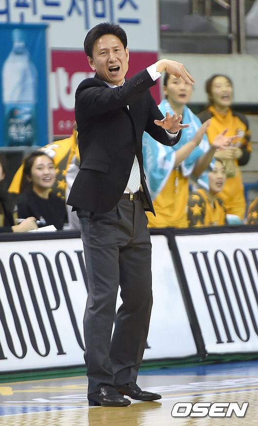 4쿼터 KB스타즈 서동철 감독이 작전지시를 하고 있다.
