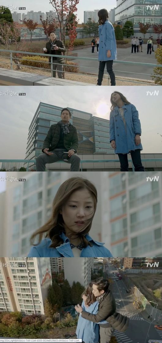 9일 방송된 tvN '하트 투 하트'에서는 옥상에서 자살 소동을 벌이는 여자의 모습이 그려졌다. 이석(천정명)은 경찰들의 연락을 받고 옥상에 올라간다.