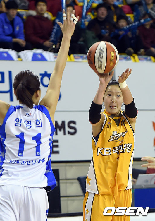 이날 승리로 올 시즌 처음으로 3연승을 달린 3위 KB스타즈는 11승9패를 마크, 4위 용인 삼성생명(9승11패)과 격차를 2경기로 벌리는데 성공했다. 1위 우리은행은 2연승을 마감하며 18승2패, 2위 인천 신한은행(14승6패)와는 4경기차가 됐다.