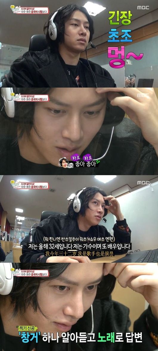 김희철이 중국어 말하기 시험에 노래를 부르는 모습으로 폭소를 자아냈다.
