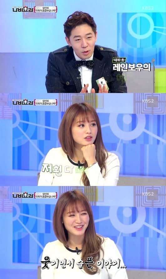 김재경은 9일 오후 방송된 KBS 2TV '미래예측 버라이어티 나비효과'(이하 '나비효과')에서 미래를 예측하는 '나비효과'에 대해 이야기를 하던 중 "아이돌은 예측을 잘 하지 않느냐. 레인보우는 어떠냐"는 질문에 대해 "저흰 다 대박날 줄 알았다"고 말했다.