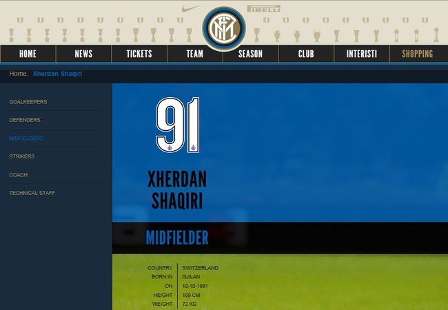 인터 밀란으로 이적한 세르단 샤키리가 등번호 91번을 받았다.