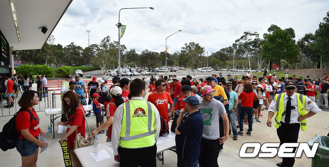 10일 오후(한국시간) 호주 캔버라 스타디움에서 '2015 AFC 아시안컵 조별리그 1차전' 한국-오만의 경기가 열릴 예정인 가운데 매표소 앞에 한인 교포 팬들이 줄을 서있다.