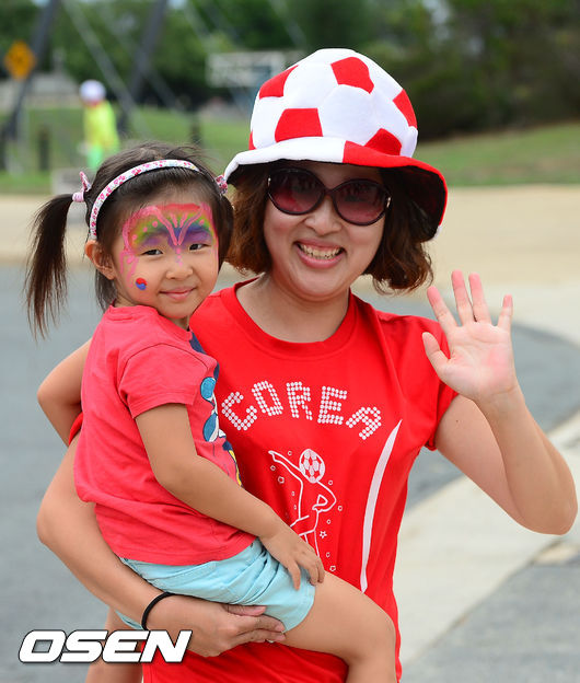 10일 오후(한국시간) 호주 캔버라 스타디움에서 '2015 AFC 아시안컵 조별리그 1차전' 한국-오만의 경기가 열릴 예정인 가운데 한인 팬들이 경기장 밖에서 응원을 하고 있다.