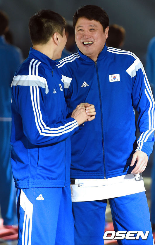 10일 오후 서울 잠실실내체육관서 열린 2014~15 KCC 프로농구 올스타전 첫날 경기에 앞서 문경은 감독과 이상민 감독이 이야기를 나누고 있다.