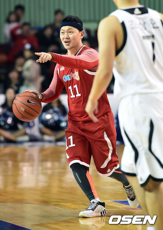 10일 오후 서울 잠실실내체육관서 열린 2014~15 KCC 프로농구 올스타전 첫날 경기, 연예인 대표팀과 역대 메달리스트팀의 대결에서 양동근이 작전 지시를 하고 있다.