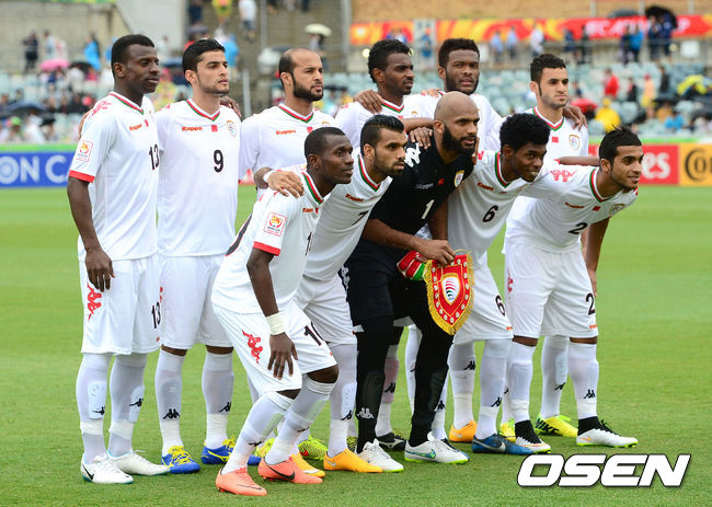 경기에 앞서 오만 선수들이 기념촬영을 하고 있다.