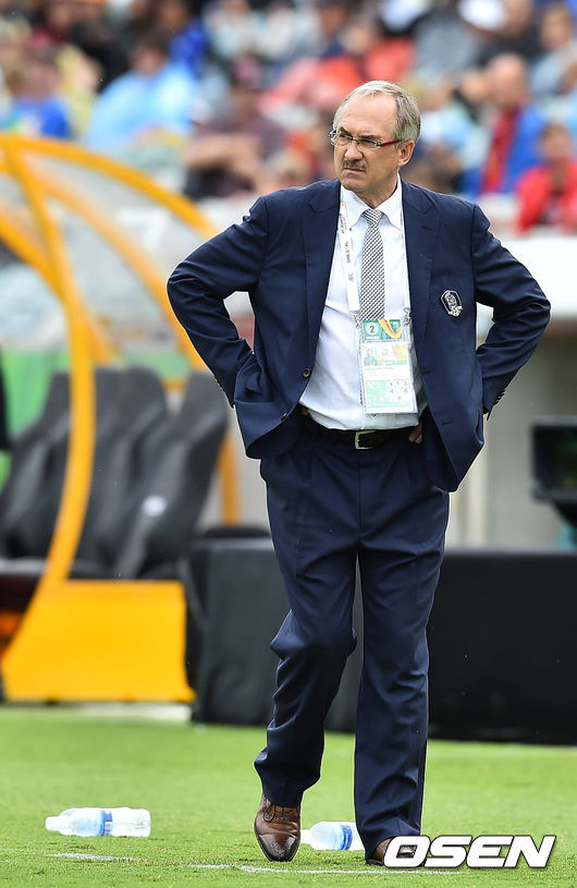 후반 한국 슈틸리케 감독이 경기를 바라보고 있다.