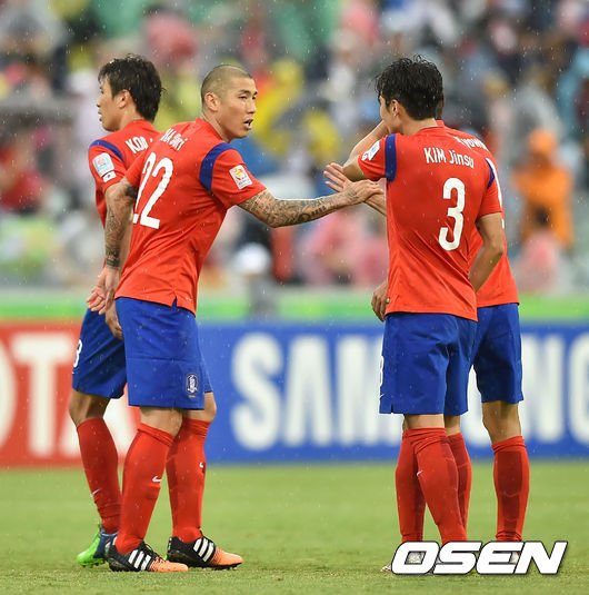 경기 종료 후 한국 차두리가 동료들과 승리의 기쁨을 나누고 있다. / rumi@osen.co.kr