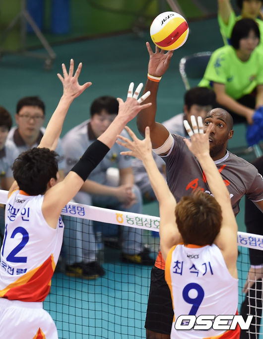 OK저축은행은 10일 수원실내체육관에서 열린 2014-2015 NH농협 V리그 한국전력과의 원정경기에서 시몬과 송명근의 활약과 더불어 송희채와 박원빈까지 고루 득점 대열에 가담하며 쥬리치가 분전한 한국전력에 승리를 거뒀다.
