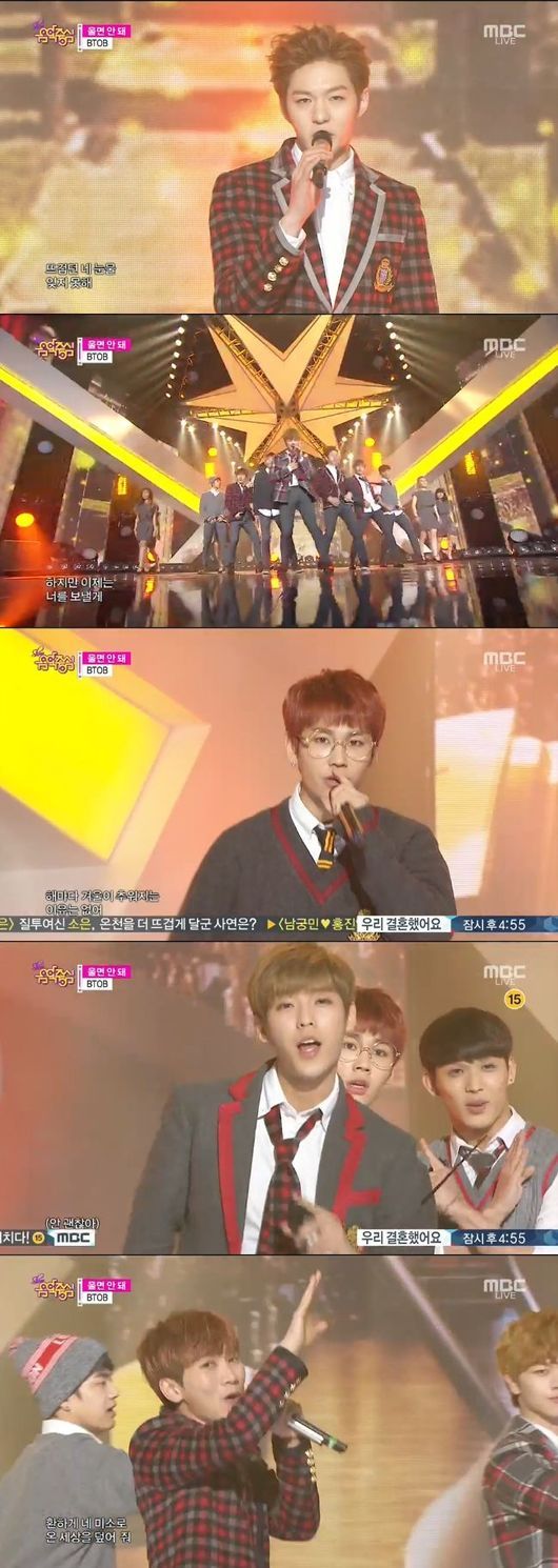이날 비투비는 멤버들 각기 개성을 살린 교복 콘셉트의 무대 의상을 입고 등장했다. 고백의 내용이 담긴 감미로운 노래인 만큼 보컬들의 미성이 돋보였다.