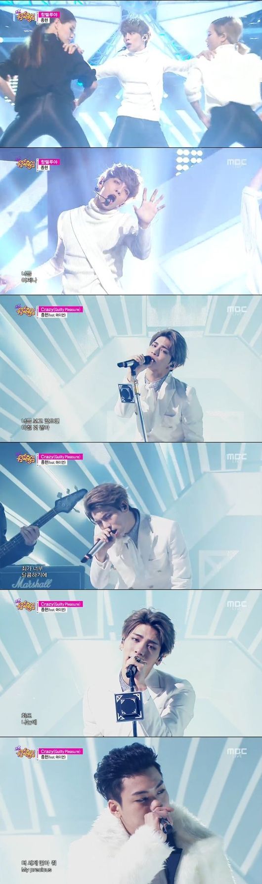 종현은 10일 오후 방송된 MBC '쇼!음악중심'에서 신곡 '할렐루야'와 '크레이지'의 화려한 무대를 선보였다.