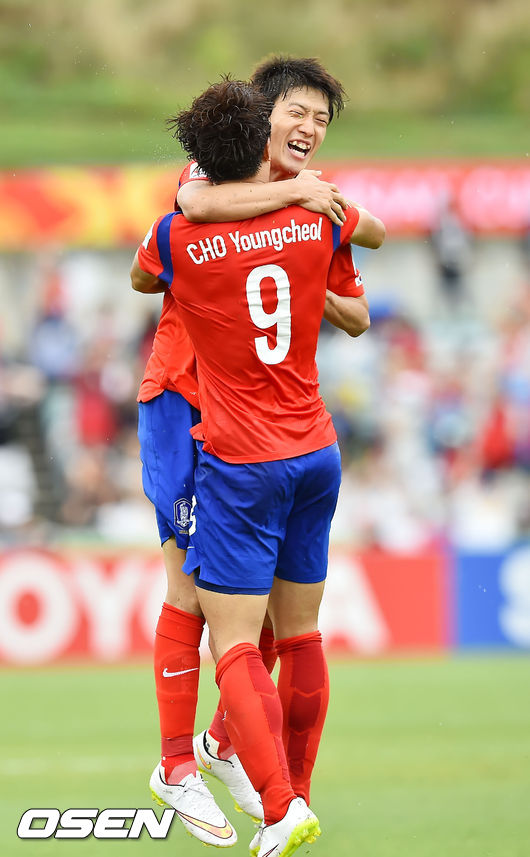 전반 한국 조영철이 선제골을 성공시키고 이청용과 포옹을 하고 있다. / rumi@osen.co.kr
