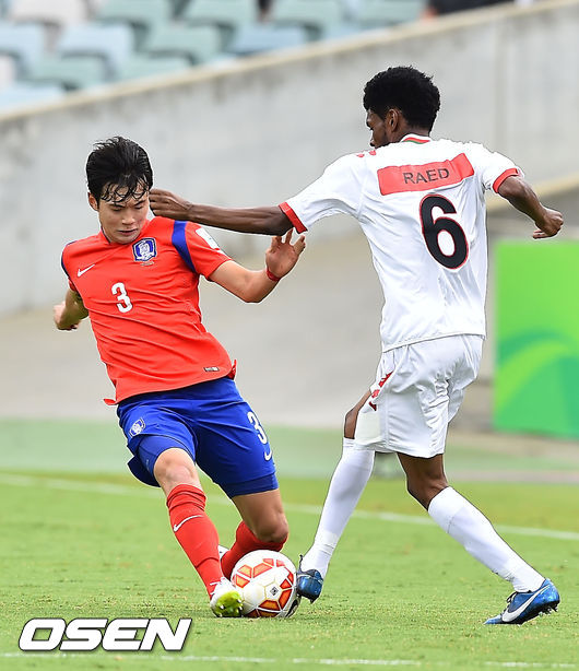 후반 한국 김진수가 볼을 뺏고 있다. / rumi@osen.co.kr