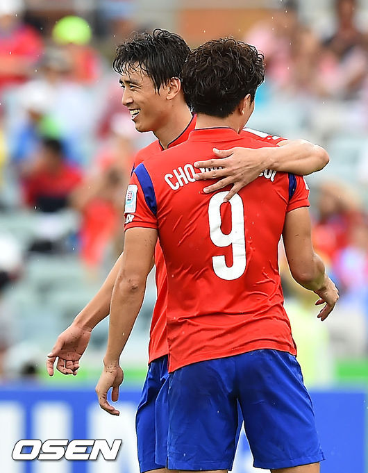 전반 한국 조영철이 선제골을 성공시키고 구자철과 조영철이 포옹을 하고 있다. / rumi@osen.co.kr