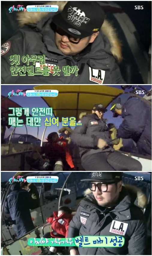 '오마베' 가수 김태우가 안전띠 매기에 어려움을 겪었다.