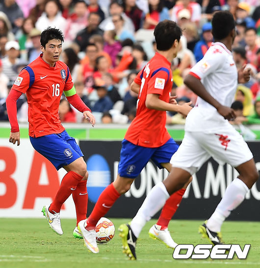 한국 기성용이 이청용에게 볼을 연결하려 하고 있다. / rumi@osen.co.kr