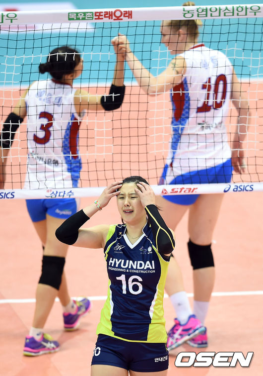 3세트 현대건설 김주하가 실점한 뒤 아쉬워하고 있다. / youngrae@osen.co.kr
