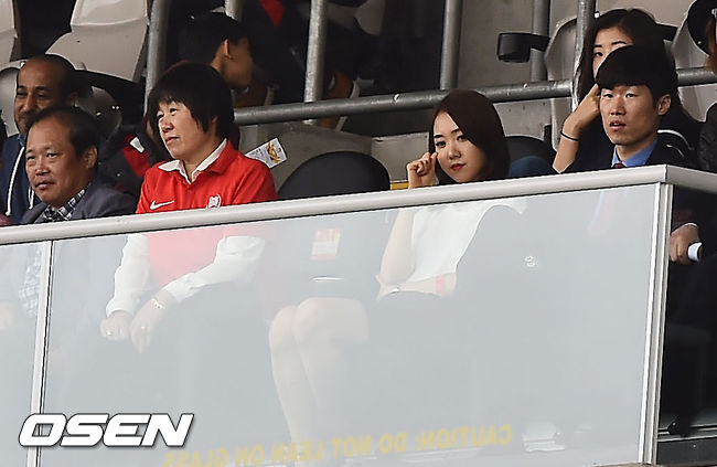 박지성이 자신의 부모님과 부인 김민지와 함께 오만전을 관전하고 있다. / rumi@osen.co.kr