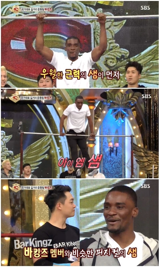 이에 '바킹즈' 측은 "근력 수준이 '바킹즈' 멤버 수준"이라고 칭찬했고, 샘 오취리는 "비행기 태우지 말라"며 쑥스러워 했다.