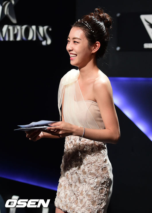 승리한 나진 e엠파이어 인터뷰를 위해 온게임넷 아나운서 조은정이 인터뷰 준비를 하고 있다.