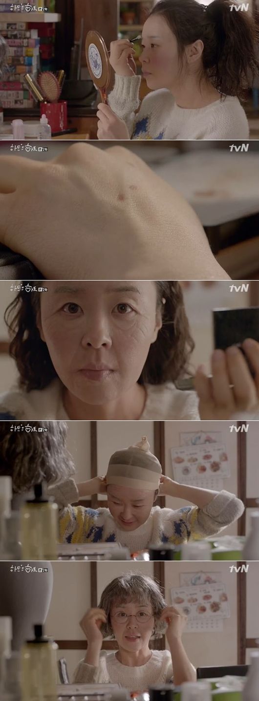 이 과정에서 순식간에 할머니 분장을 하는 홍도의 모습이 보는 이의 눈길을 끌었다. 가발은 물론, 주름, 그리고 검버섯까지 그려넣으며 진짜 할머처럼 변신한 것.