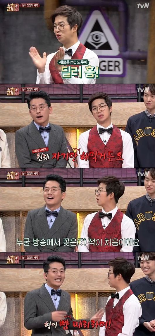 10일 오후 방송된 tvN 예능프로그램 '눈치왕'에서는 메인 MC 김준호를 도우며 딜러 역할을 맡아줄 보조 MC가 추가됐다. 보조MC는 바로 홍인규.