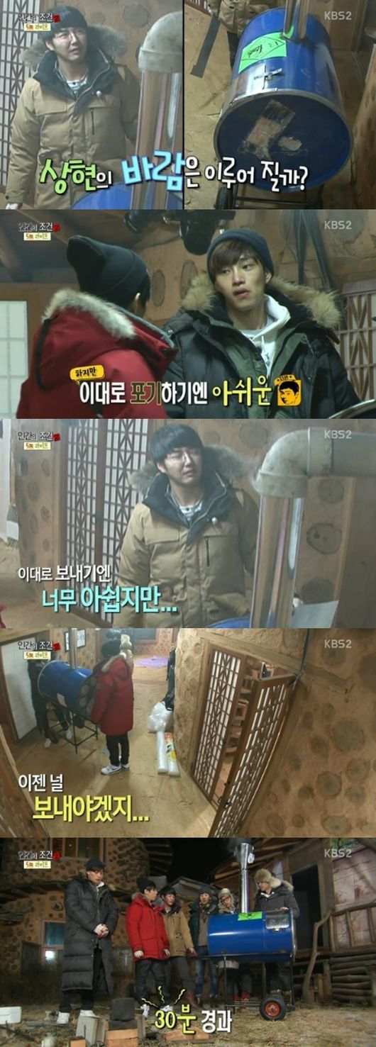 10일 방송된 KBS 2TV 예능프로그램 ‘인간의 조건2’에서는 윤상현, 은지원, 봉태규, 허태희, 현우, 김재영 등이 자가용, 인터넷, 돈, 쓰레기, 휴대폰 없이 사는 ‘오無 라이프’ 미션을 수행하는 모습이 그려졌다.