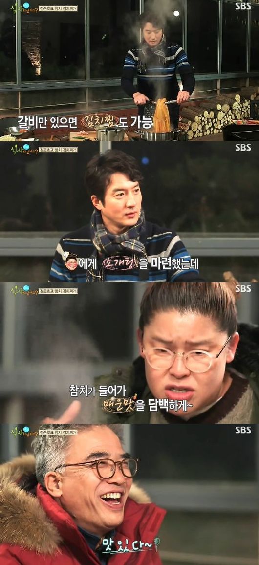 방송인 이영자가 배우 정준호가 만든 김치찌개를 먹으며 감탄했다.