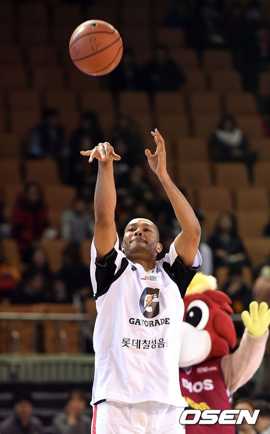 3점슛 컨테스트에서 문태종이 슛을 시도하고 있다.
