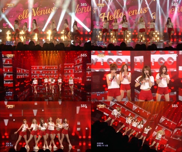 이날 헬로비너스는 늘씬한 각선미를 강조한 빨간색 핫팬츠를 입고 무대에 올랐다. 헬로비너스는 섹시함음을 강조한 포인트 안무를 비롯해 귀여움과 섹시함이 공존하는 퍼포먼스로 시선을 사로잡았다.