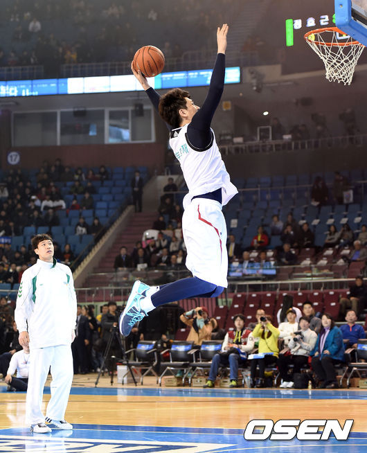 덩크 콘테스트 예선에서 삼성 김준일이 덩크슛을 시도하고 있다.