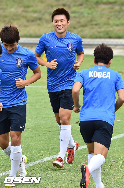 11일 오후(이하 한국시간) 호주 캔버라 맥켈러 파크에서 열린 한국 축구대표팀 회복 훈련에서 이명주가 환하게 웃고 있다.
