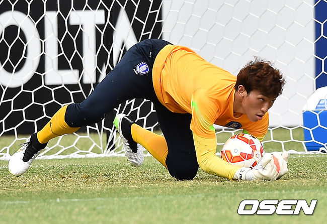11일 오후(이하 한국시간) 호주 캔버라 맥켈러 파크에서 열린 한국 축구대표팀 회복 훈련에서 김승규가 수비훈련을 하고 있다.