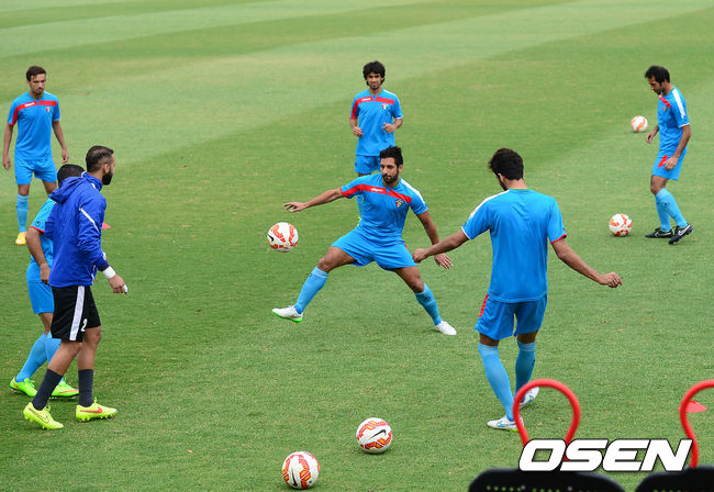 11일 오후(이하 한국시간) 호주 캔버라 맥켈러 파크에서 열린 쿠웨이트 축구대표팀 훈련에서 쿠웨이트 선수들이 그라운드 위에서 몸을 풀고 있다.