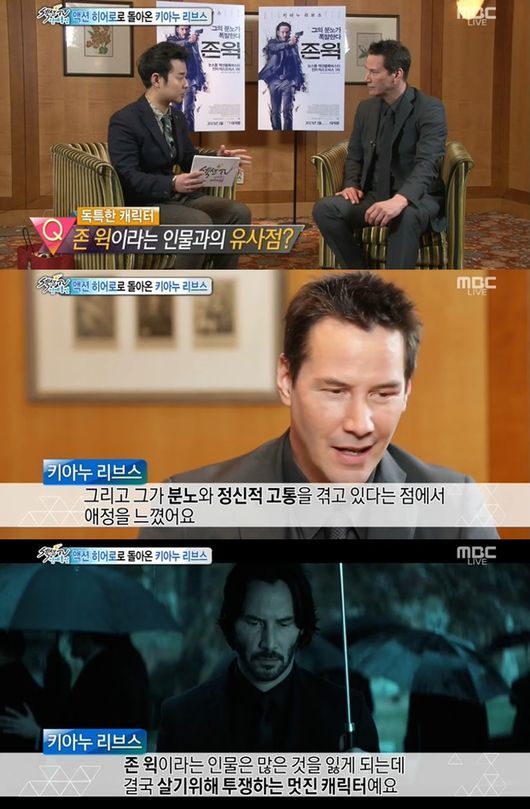 키아누 리브스는 11일 오후 방송된 MBC ‘섹션 TV 연예통신’에서 “존 윅은 정신적 고통이 나와 닮았다”고 밝혔다.