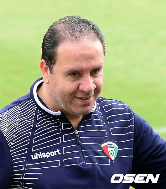 11일 오후(이하 한국시간) 호주 캔버라 맥켈러 파크에서 열린 쿠웨이트 축구대표팀 훈련에서 나빌 말룰 쿠웨이트 감독이 미소짓고 있다.
