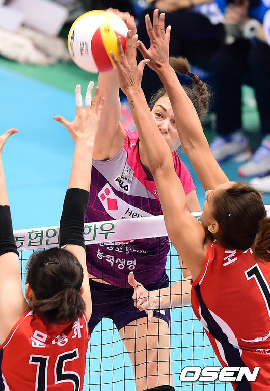 11일 오후 대전충무체육관에서 열린 '2014-2015 NH농협 V-리그' 인삼공사와 흥국생명의 경기 1세트 루크가 공격을 시도하고 있다.
