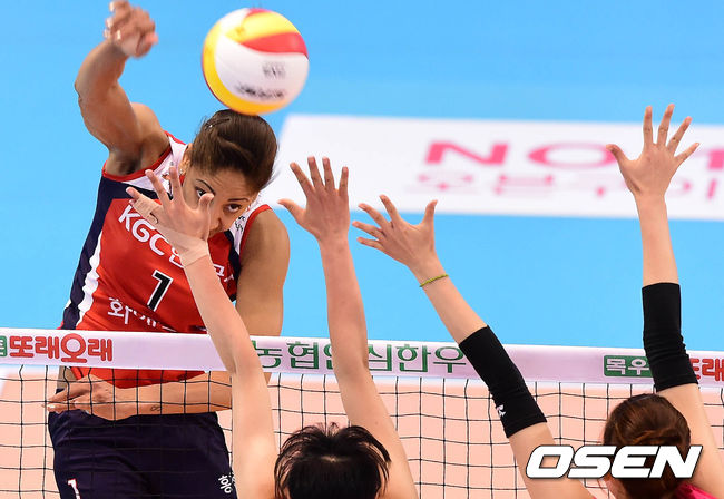 11일 오후 대전충무체육관에서 열린 '2014-2015 NH농협 V-리그' 인삼공사와 흥국생명의 경기 2세트 조이스가 공격을 시도하고 있다.