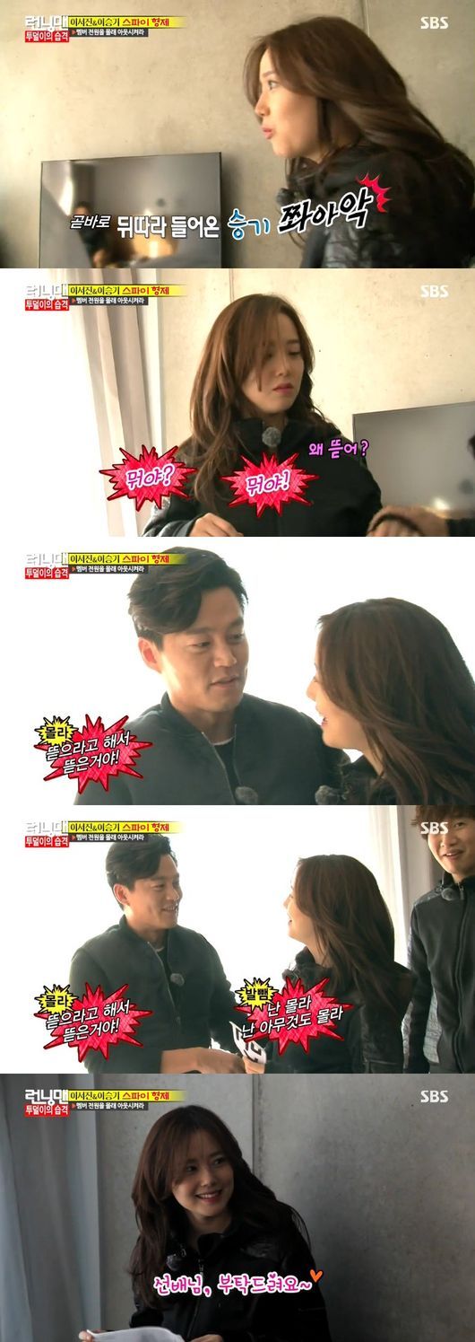 한편 이날 ‘런닝맨’은 영화 ‘오늘의 연애’ 주인공인 이승기-문채원과 이서진이 함께 했다. 이승기와 이서진은 멤버들을 속이는 스파이로 활약했다.